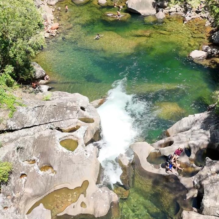 O acesso é fácil, com trilhas leves e cachoeiras de águas rasas e tranquilas, ideais para crianças ou para quem busca relaxar em uma das hidromassagens naturais formadas pelas rochas.